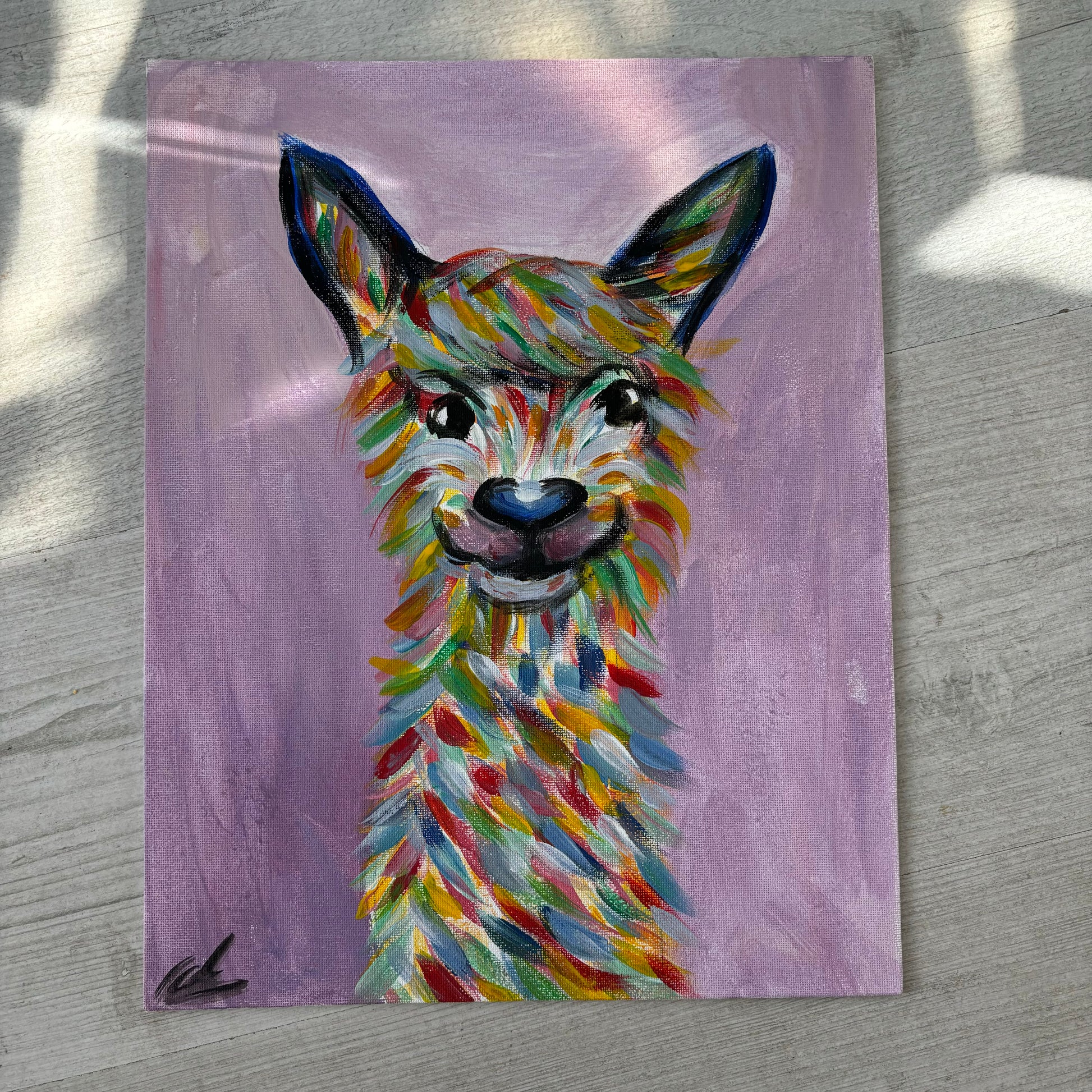 A4 Acrylic Canvas Board Painting of a colourful llama
